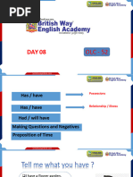 possesses something. (He has an expensive watch . She has a large house)