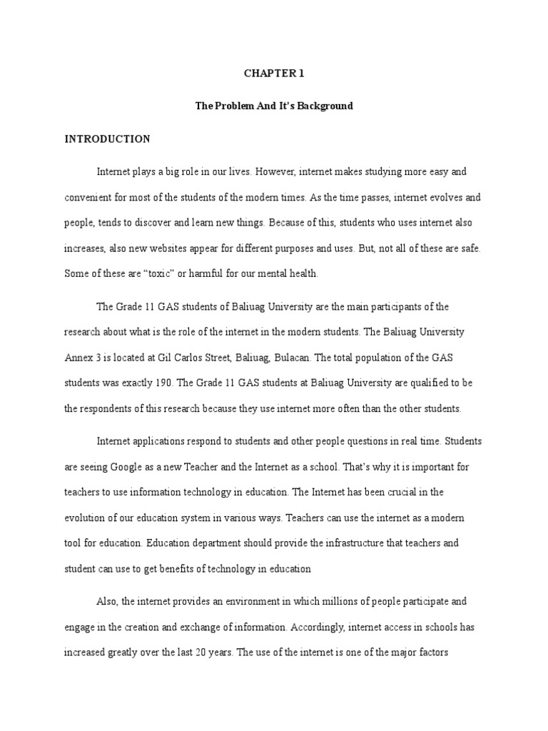 University, Baliwag Bulacan on The Roles of the Internet to the Modern Students. Moreover, this