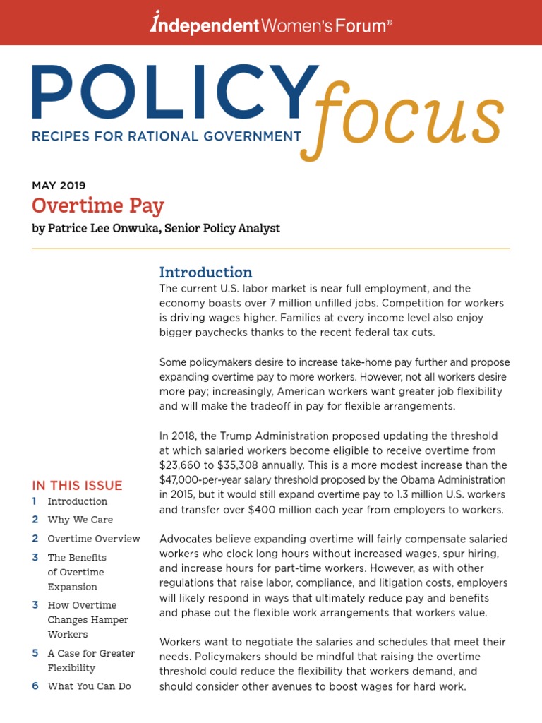 Some policymakers desire to increase take-home pay further and propose expanding overtime pay to more workers. However, not all workers desire more pay; increasingly, American workers want greater job flexibility and will make the tradeoff in pay for flexible arrangements.