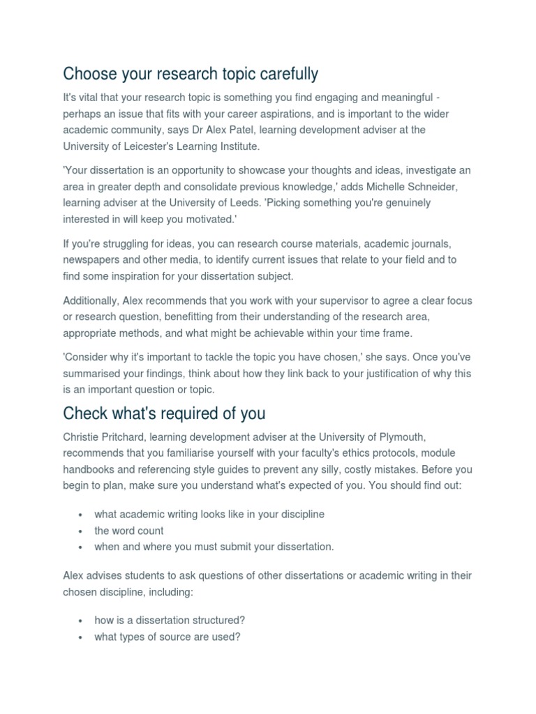 'Your dissertation is an opportunity to showcase your thoughts and ideas, investigate an