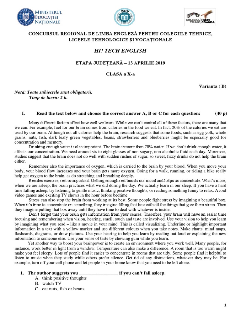 CONCURSUL REGIONAL DE LIMBA ENGLEZĂ PENTRU COLEGIILE TEHNICE,