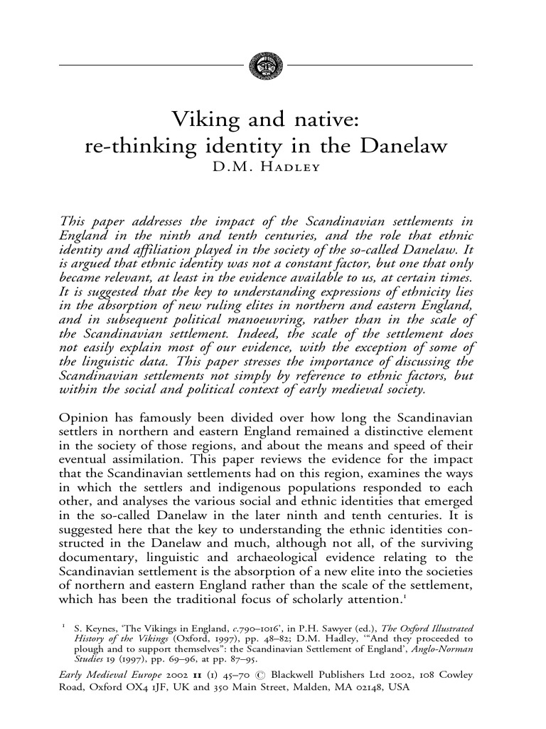 Danelaw. Ethnic identity became a `live' issue only at certain times, and,