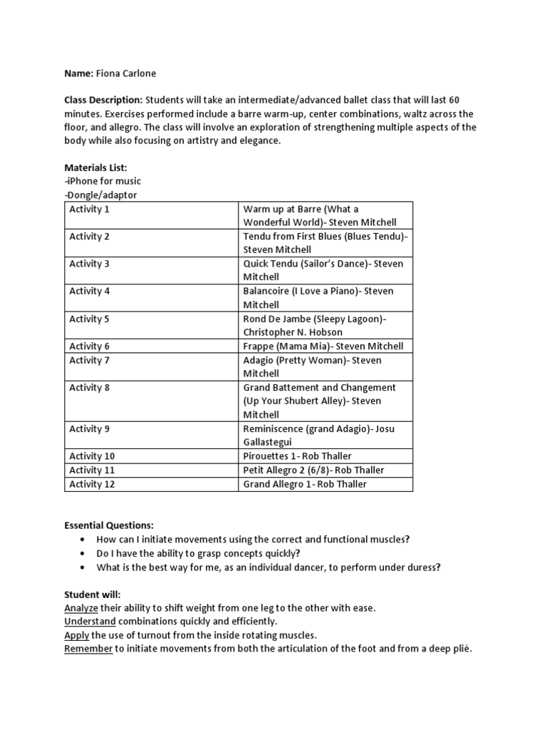Class Description: Students will take an intermediate/advanced ballet class that will last 60