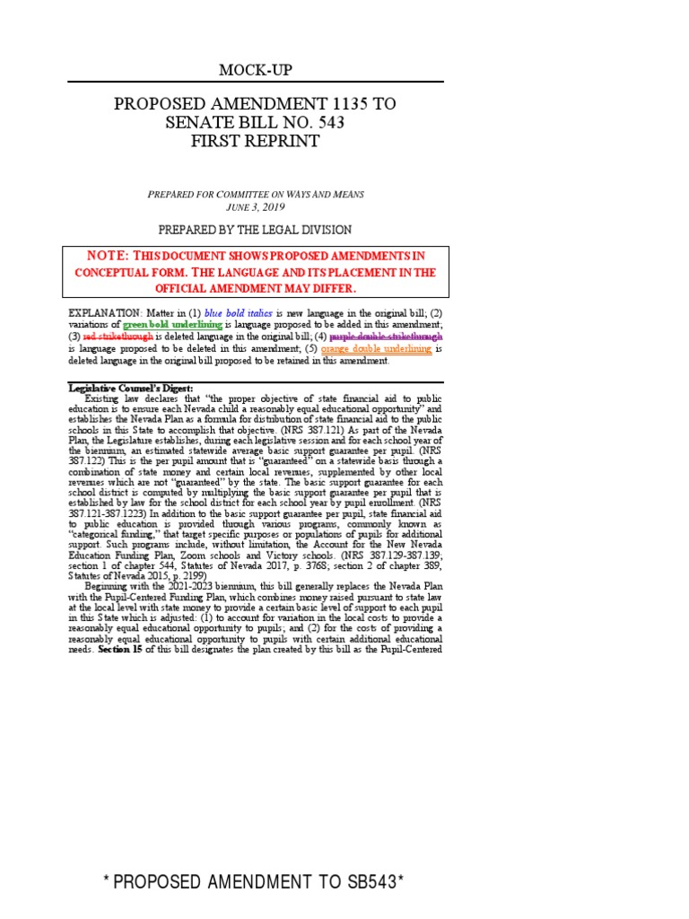 is language proposed to be added in this amendment; (3) red strikethrough is deleted language in the original bill; (4) purple double strikethrough