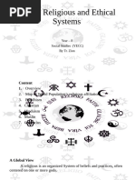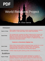 The document compares four major world religions - Hinduism, Christianity, Islam, and Atheism/Agnosticism. It outlines key details about each such as the number of followers, core beliefs, important texts, symbols, holidays, and places of worship.