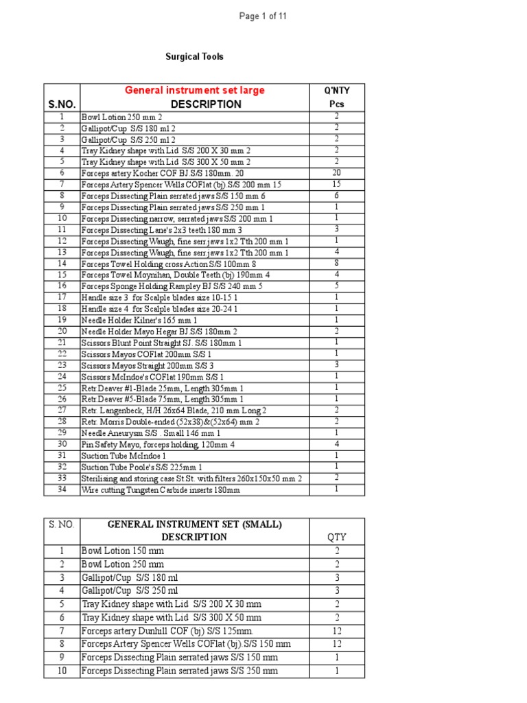 S. NO. GENERAL INSTRUMENT SET (SMALL)