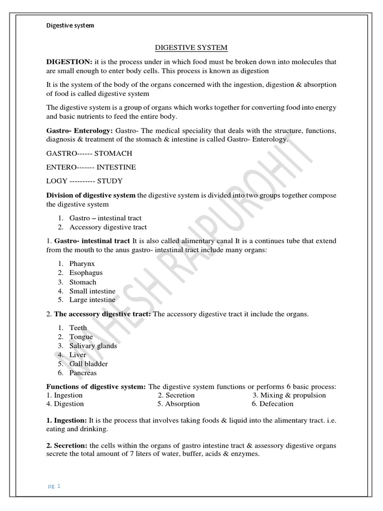 1. Ingestion: It is the process that involves taking foods & liquid into the alimentary tract. i.e.