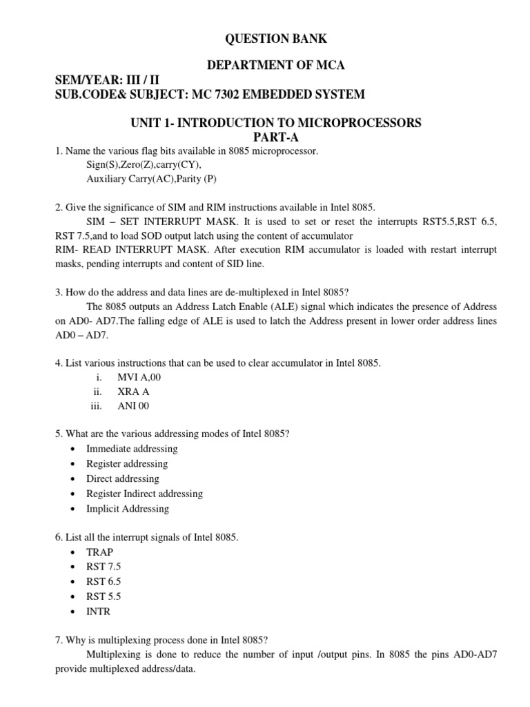 SUB.CODE& SUBJECT: MC 7302 EMBEDDED SYSTEM