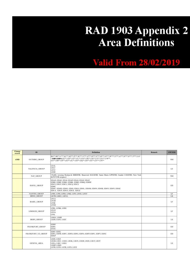 If there are amendments in next RAD edition the row abbreviation will be changed from NEW to AMD.