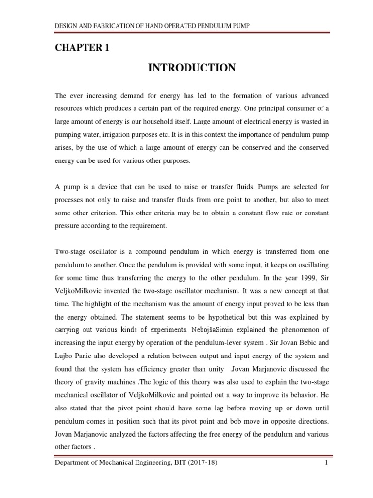DESIGN AND FABRICATION OF HAND OPERATED PENDULUM PUMP