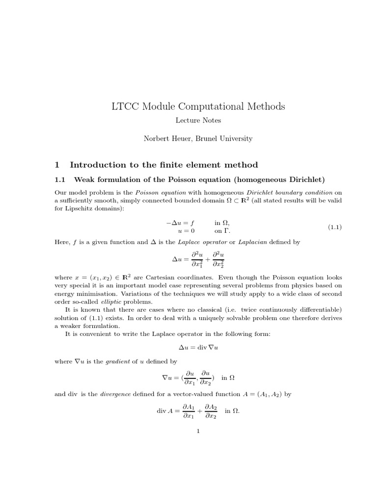 and can also be written in the general form (1.12) with V = H01 (Ω), a(u, v) = (∇u, ∇v) + (u, v)