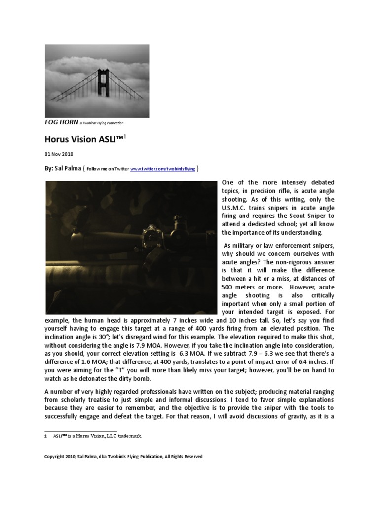 spotter's optic, the sniper team can readily and accurately determine the inclination angle and its cosine
