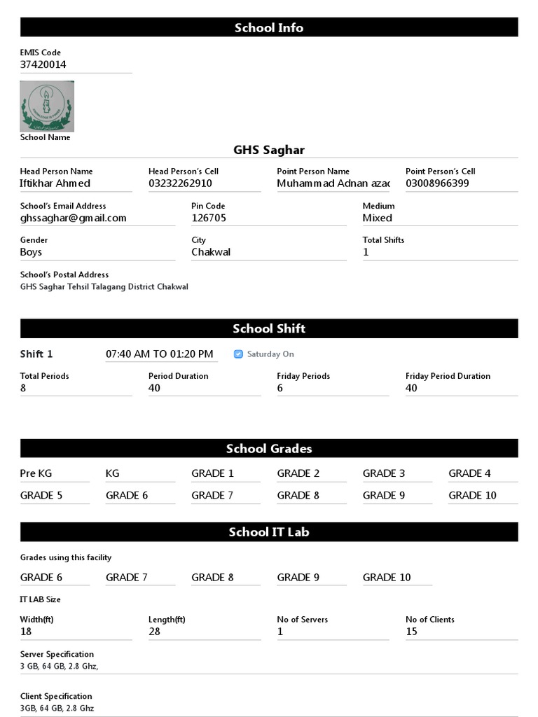 School’s Email Address Pin Code Medium