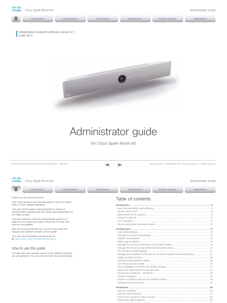 D15374.02 Spark Room Kit Administrator Guide CE9.1, JUNE 2017. [Link] — Copyright © 2017 Cisco Systems, Inc. All rights reserved.