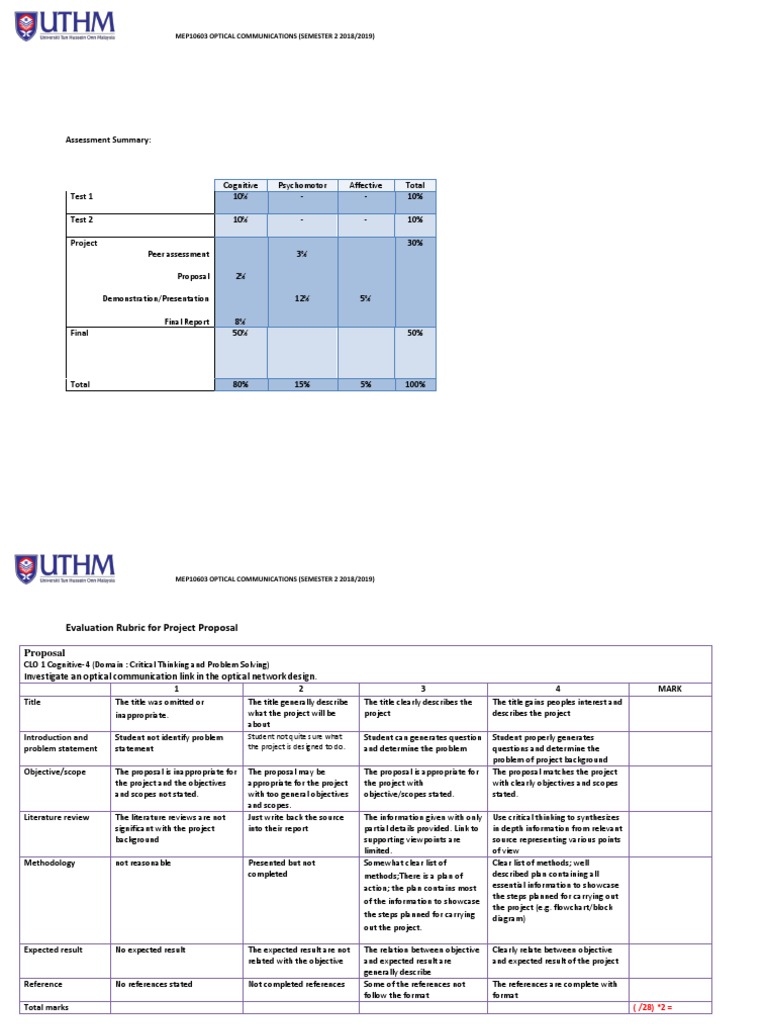 MEP10603 OPTICAL COMMUNICATIONS (SEMESTER 2 2018/2019)