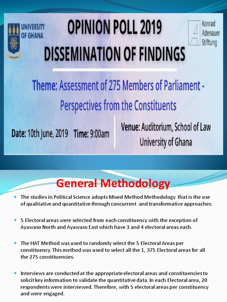The Survey was conducted by the Political Science Departmet of the University of Ghana with support from Konrad Adenauer Stiftung, a German political party foundation.