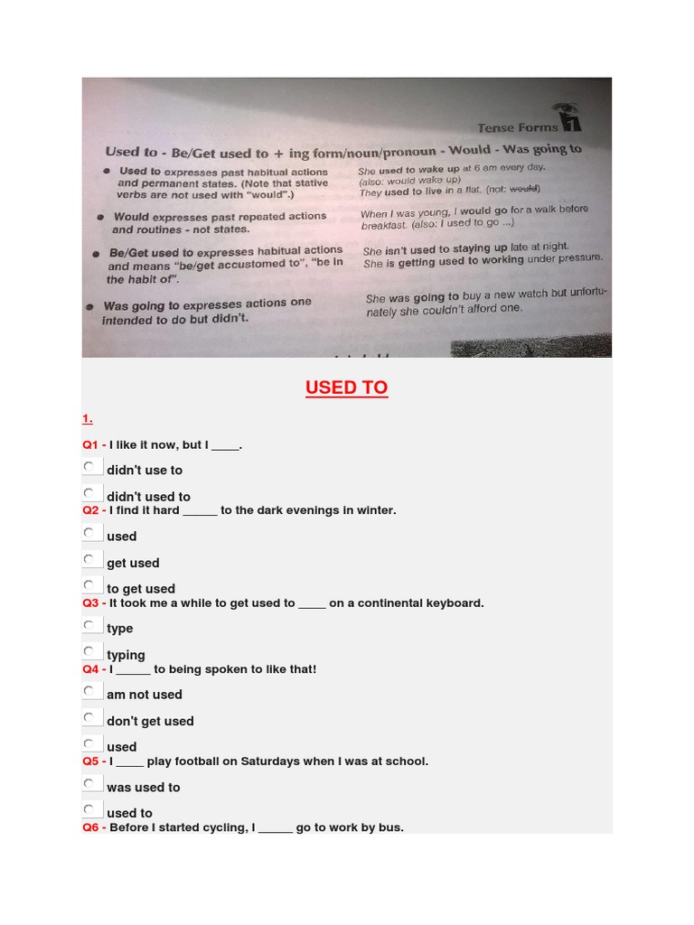 6. Fill in exercise with used to, didn't use to negative, would or wouldn't.