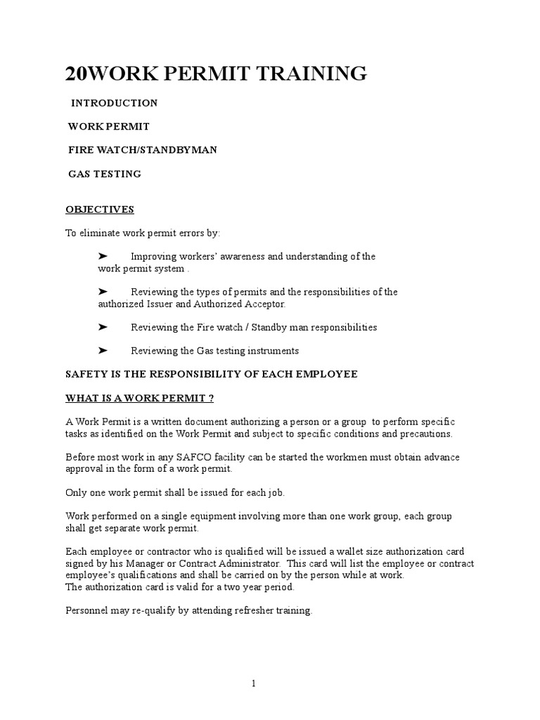 A Work Permit is a written document authorizing a person or a group to perform specific
