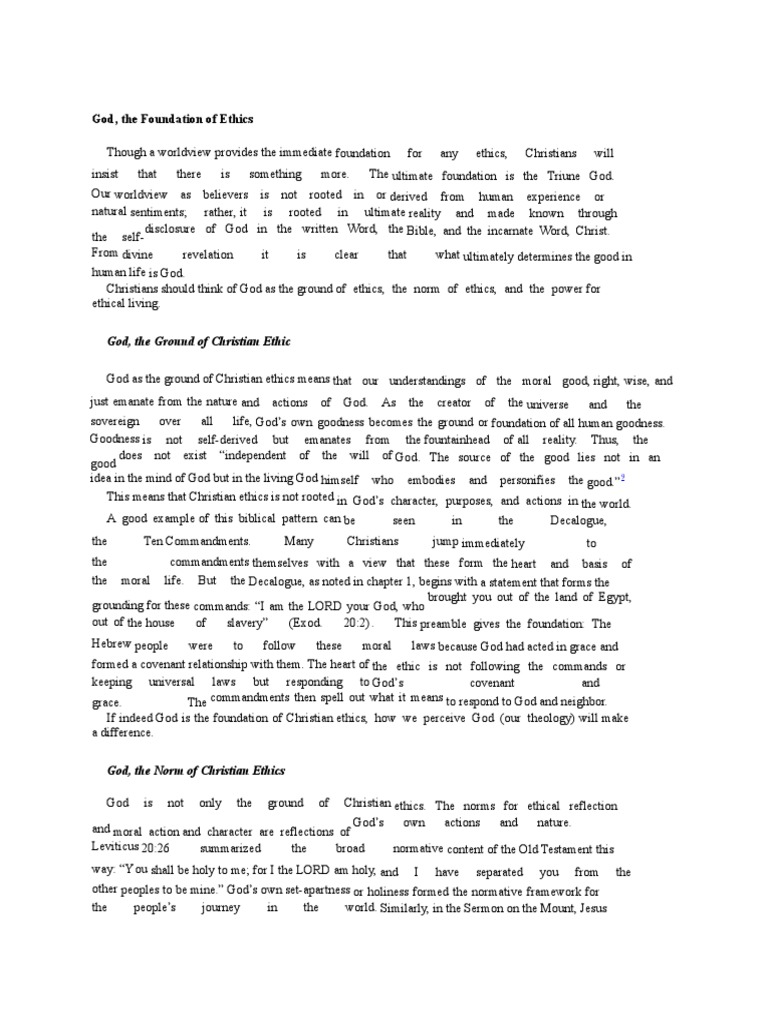 God is not only the ground of Christian ethics. The norms for ethical reflection
