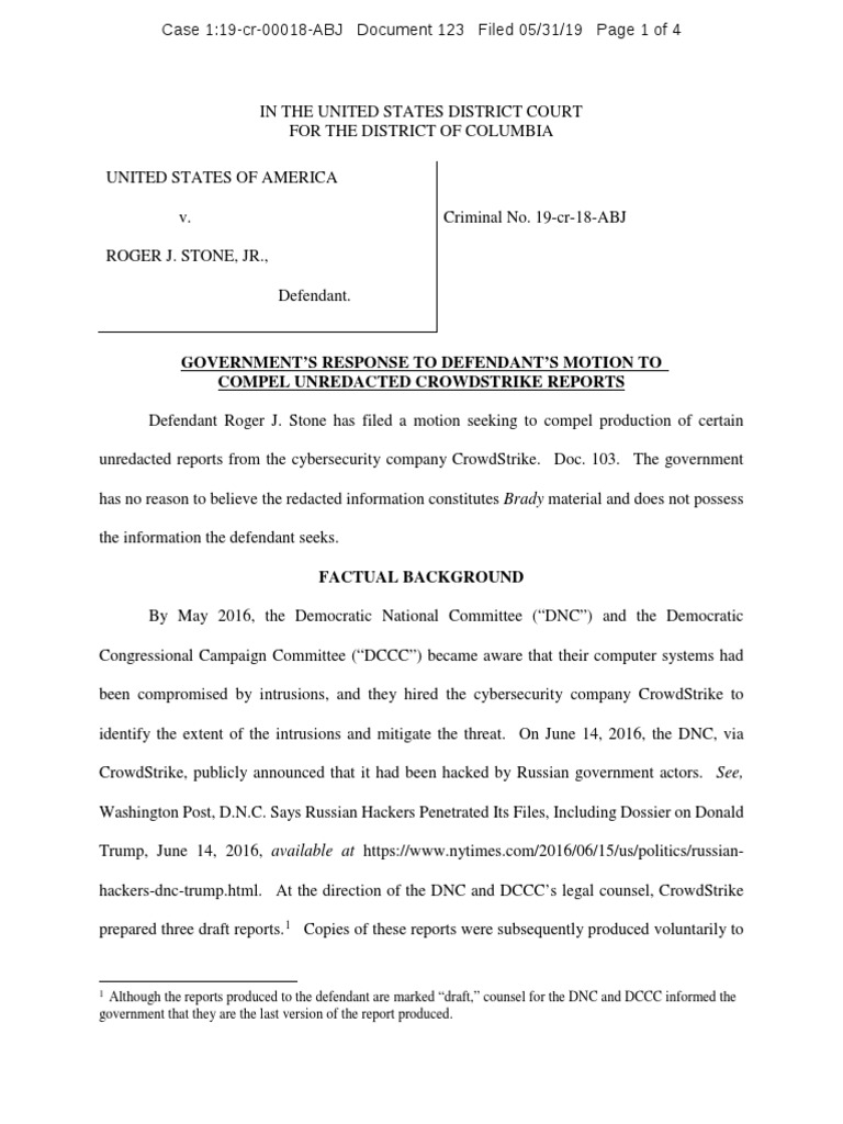 Stone - de 123 DOJ Response To MTC Crowdstrike Reports