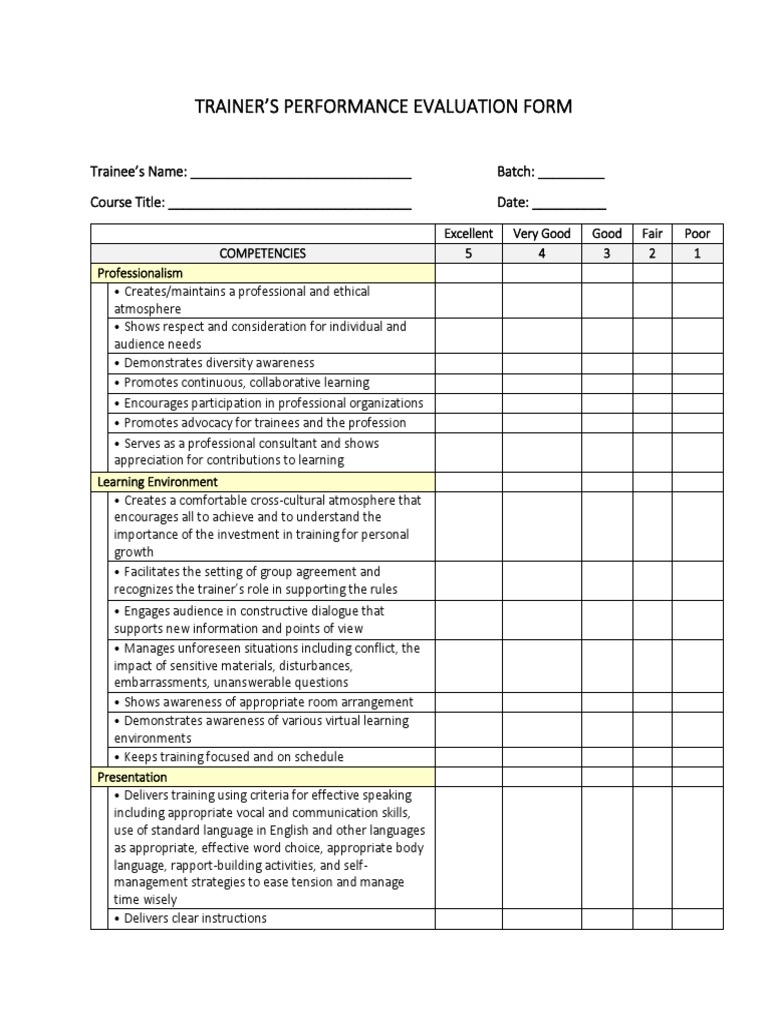 TRAINER’S PERFORMANCE EVALUATION FORM