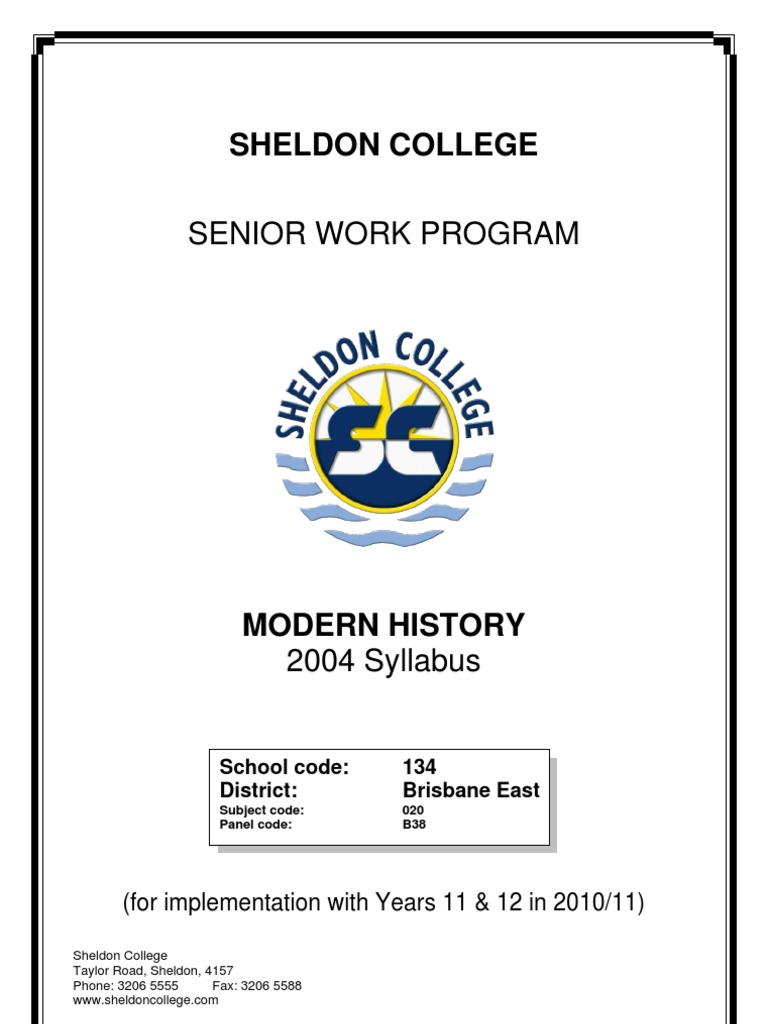 Modern History at Sheldon College consists of 3 x 70 minute lessons each week. This equates to