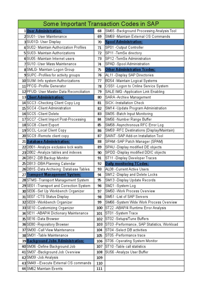 41 SM37 -Background Job Overview 108 SU56 -Analyze User Buffer