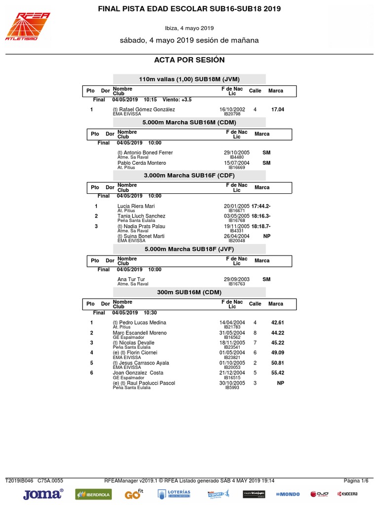 T2019IB046 C75A.0055 RFEAManager v2019.1 © RFEA Listado generado SÁB 4 MAY 2019 19:14 Página 6/6