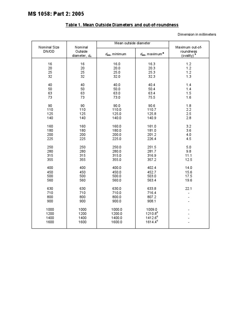 Table 1. Mean Outside Diameters and out-of-roundness