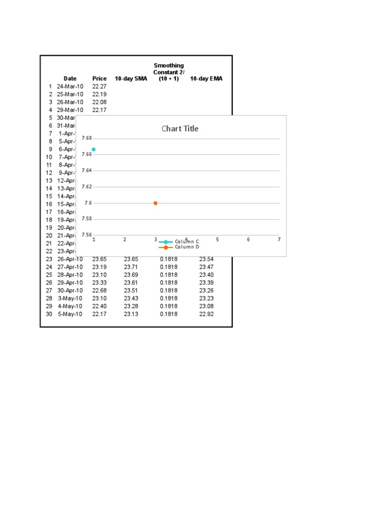 Date Price 10-day SMA (10 + 1) 10-day EMA