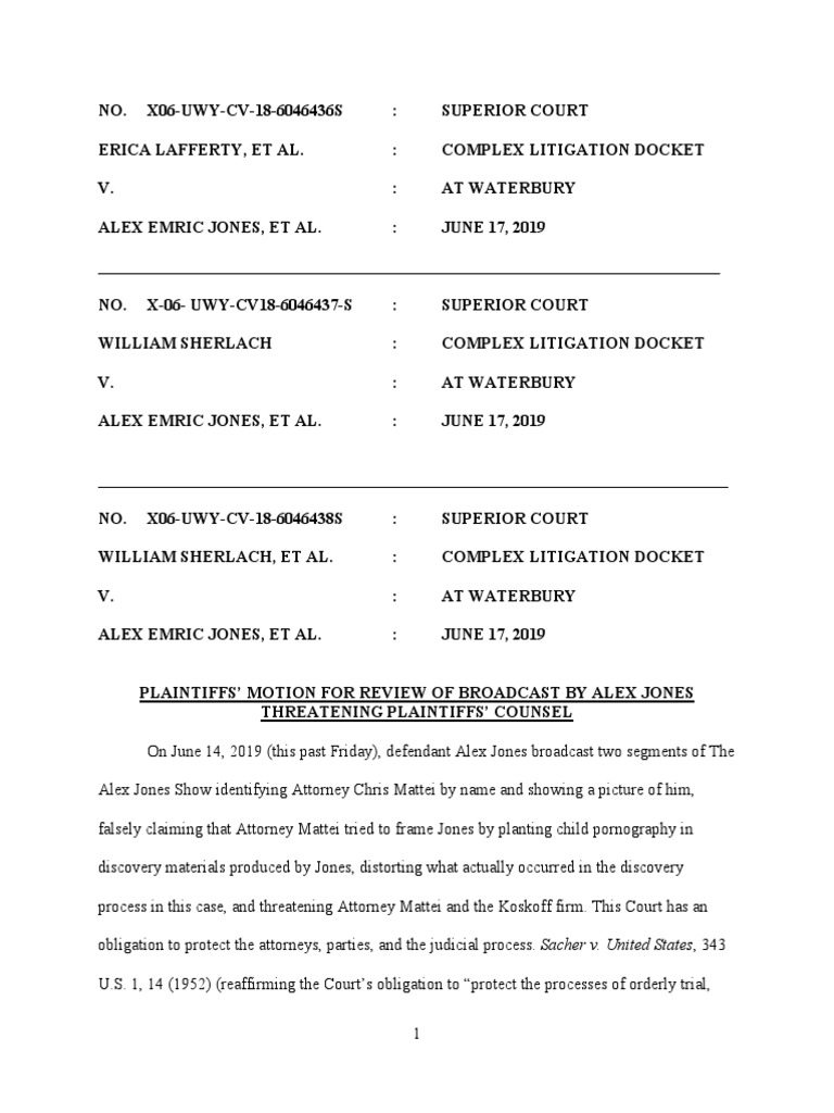 PLAINTIFFS’ MOTION FOR REVIEW OF BROADCAST BY ALEX JONES