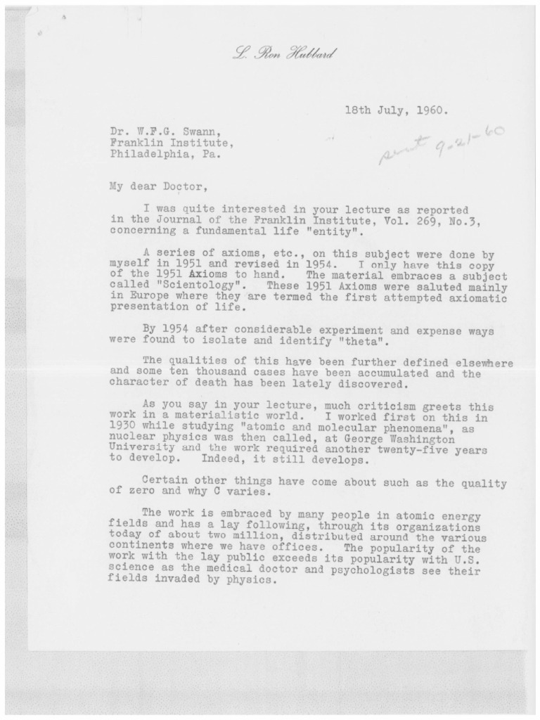 L. Ron Hubbard boasts about his academic credentials in a 1960 letter.