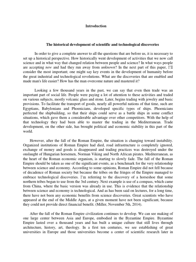 between science and economy. According to some opinions, Roman Empire did not fell because