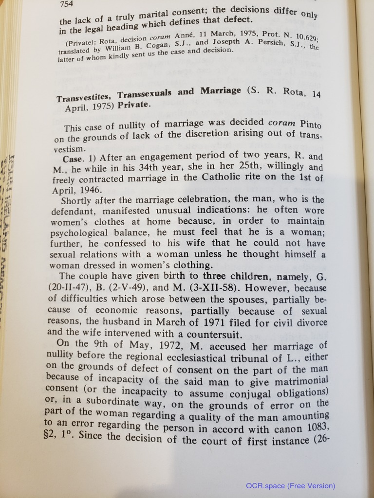Transvesites,TranssexalsandMarriageS.R.Rota,14