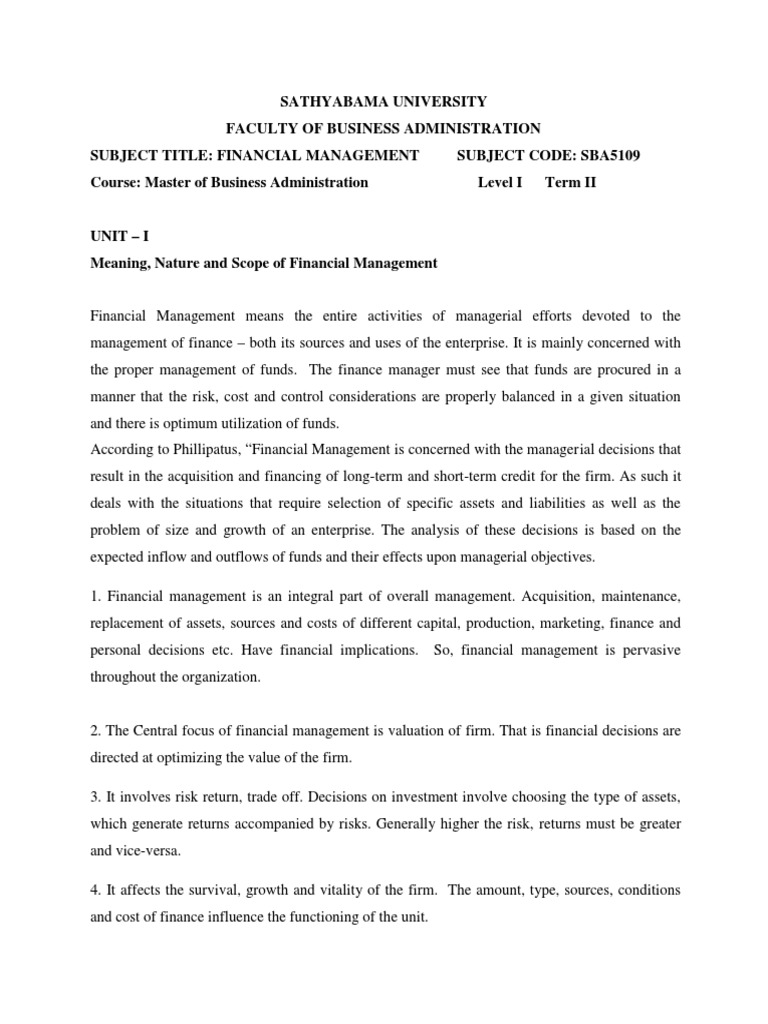 Meaning, Nature and Scope of Financial Management