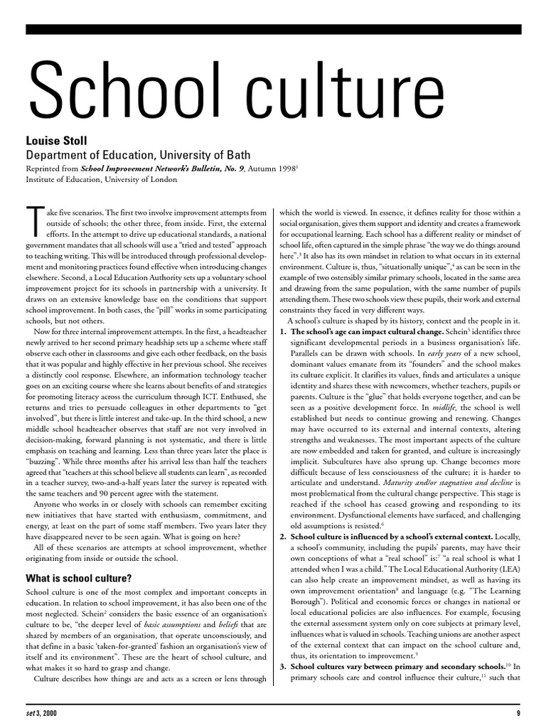 School Culture Stoll Article Set3 2000