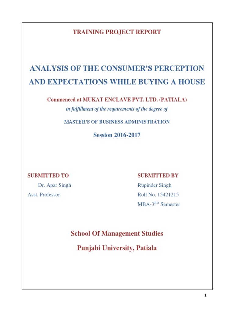 Consumer’s Perception and Expectations while Buying a House” taken up during my final
