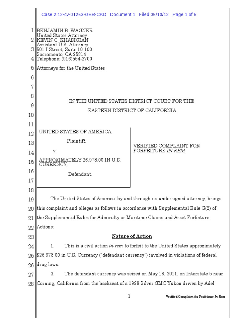 24 1. This is a civil action in rem to forfeit to the United States approximately