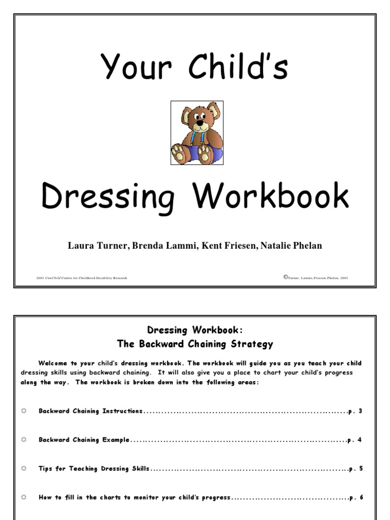 dressing skills using backward chaining. It will also give you a place to chart your child’s progress