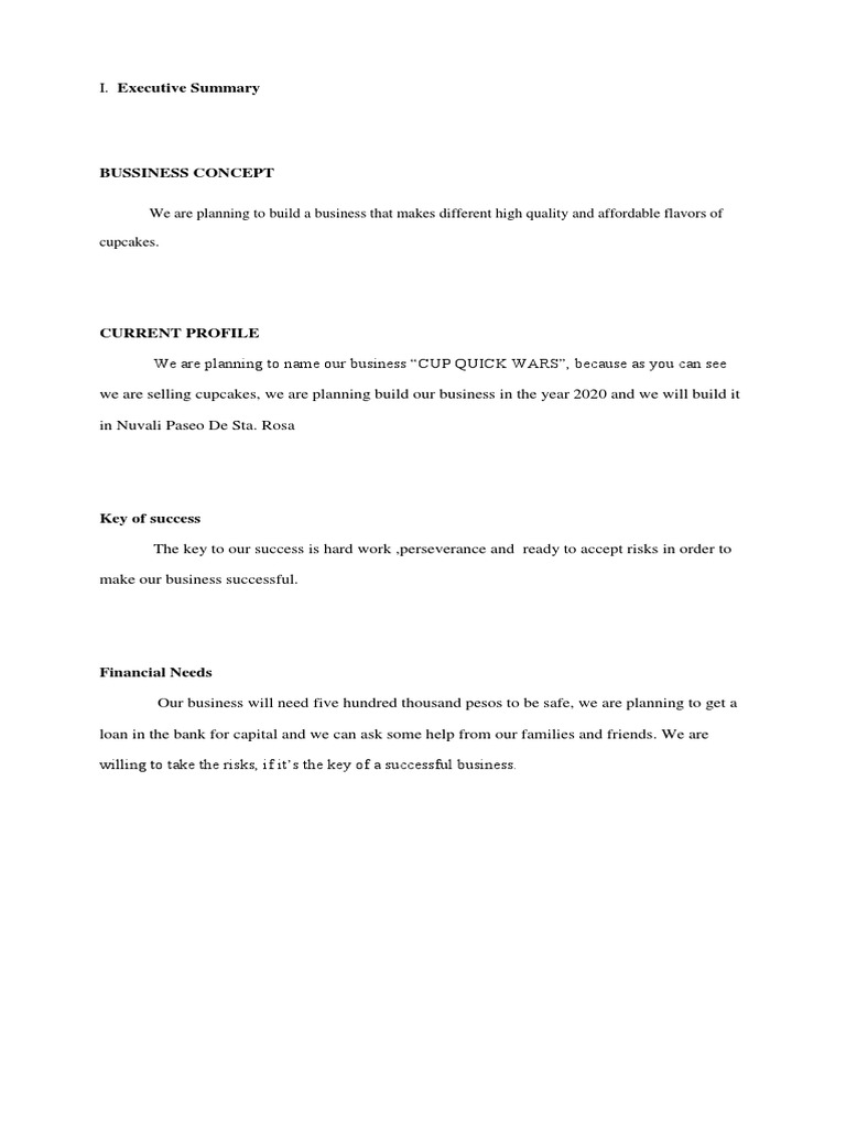 we are selling cupcakes, we are planning build our business in the year 2020 and we will build it