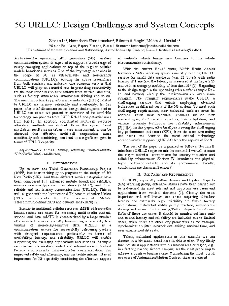 Nokia Bell Labs, Espoo, Finland, E-mail: firstname.lastname@nokia-bell-labs.com