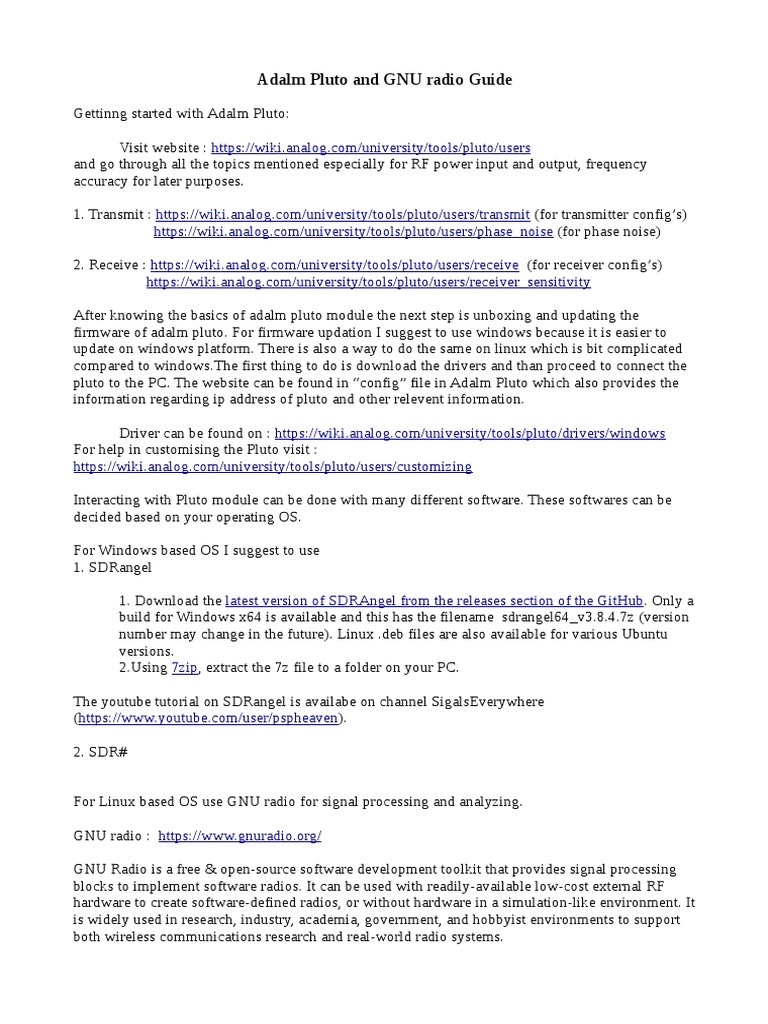 Adalm Pluto and GNU radio Guide