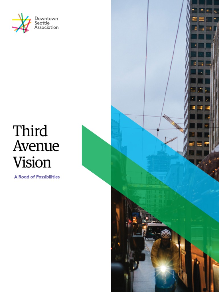 Tens of thousands of people travel Third Avenue every day. They rely on it to get to work, meet friends and colleagues, shop in downtown, attend doctors appointments and visit cultural venues. Very few of us choose to spend any free time on Third Avenue, though. The sheer number of vehicles, weaving traffic and bleak pedestrian environment discourage recreational activity.We believe there is a better way. We can move more people faster along this central transit corridor without sacrificing the pedestrian or rider experience. Seattle is a world-class city, and we can build the Third Avenue it deserves.That’s why DSA championed a year-long visioning process to determine four design scenarios reimagining a thriving, vibrant Third Avenue. Over the course of this project, we convened hundreds of stakeholders, engaged building owners, businesses, residents, elected leaders and government agencies.We explored a variety of solutions for transportation, urban design and management. We also examined ways the private sector can contribute through retail uses and storefront repairs, and where public-private partnerships could play a role in public space activation and enhanced maintenance.This report details our research and extensive discussions. Each of the four scenarios are outlined, showcasing their streetscape features, transportation strategies and collective advantages and disadvantages.We are proud to offer this vision for a flourishing Third Avenue and believe it delivers on Seattle’s promise to be an equitable, welcoming and modern city. We invite you to join our coalition, make your voice heard and shape the future of Third Avenue.