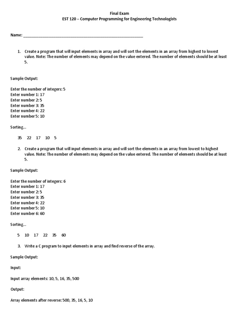 1. Create a program that will input elements in array and will sort the elements in an array from highest to lowest