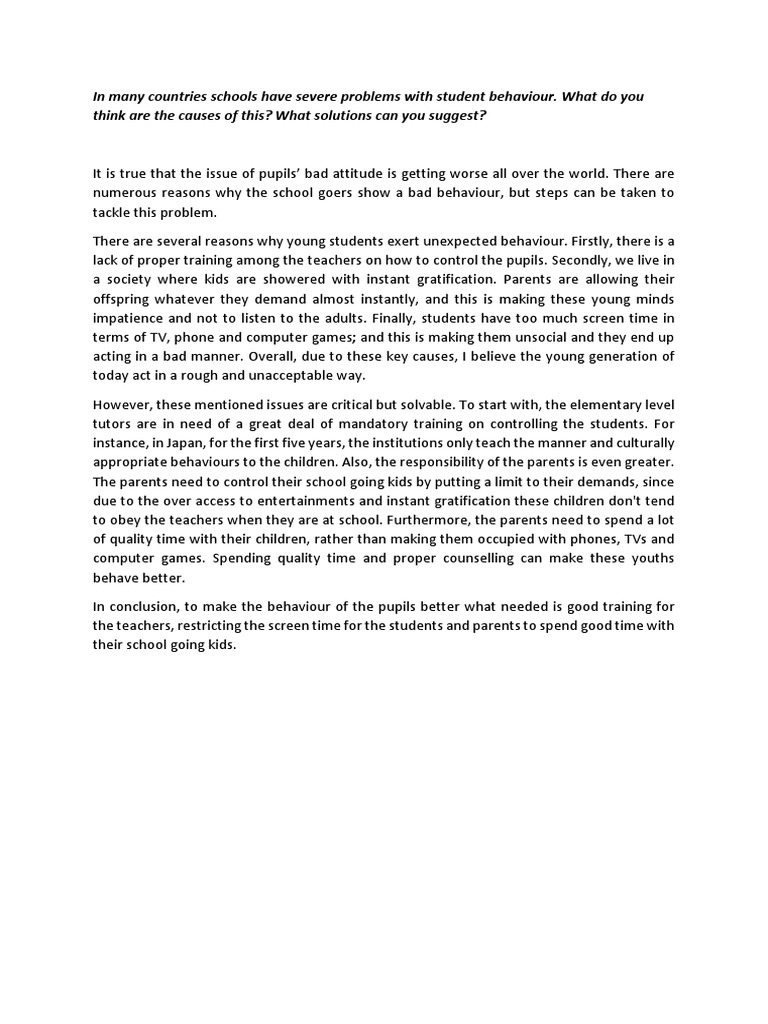 numerous reasons why the school goers show a bad behaviour, but steps can be taken to