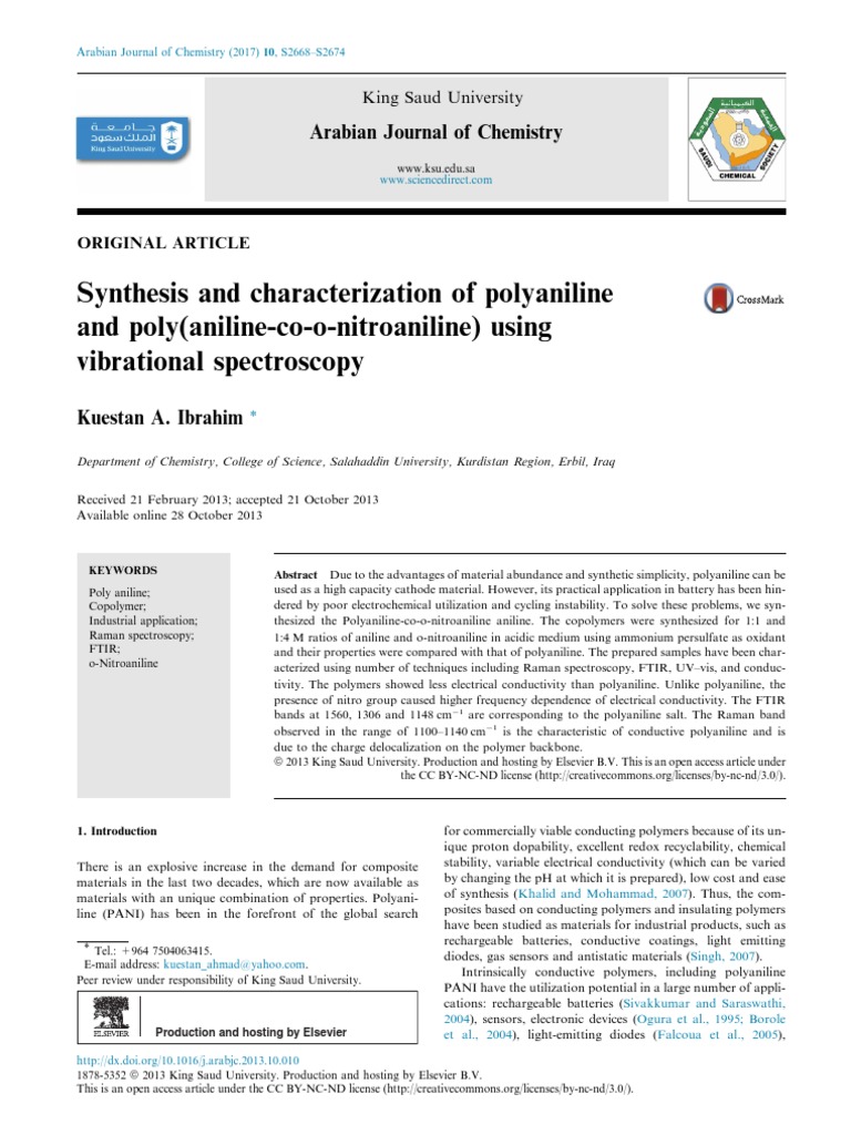 Barnard, M.C., Goff, A.H., 1999. Synthetic Metals 102, 1342. Salih, R.A., 2011. Iraqi National Journal of Chemistry 43, 319.