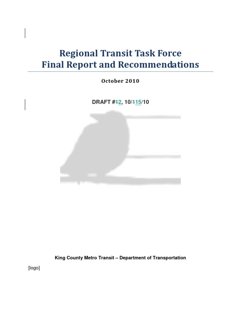 Regional Transit Task Force Final Report and Recommendations, October 2010—DRAFT #21 v