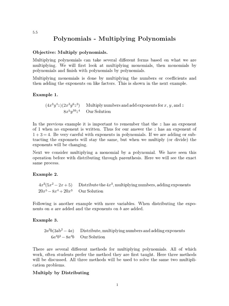 Polynomials - Multiplying Polynomials