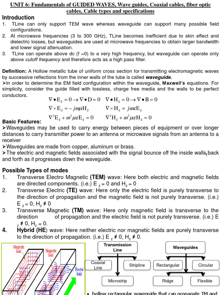 UNIT 6: Fundamentals of GUIDED WAVES, Wave guides, Coaxial cables, fiber optic