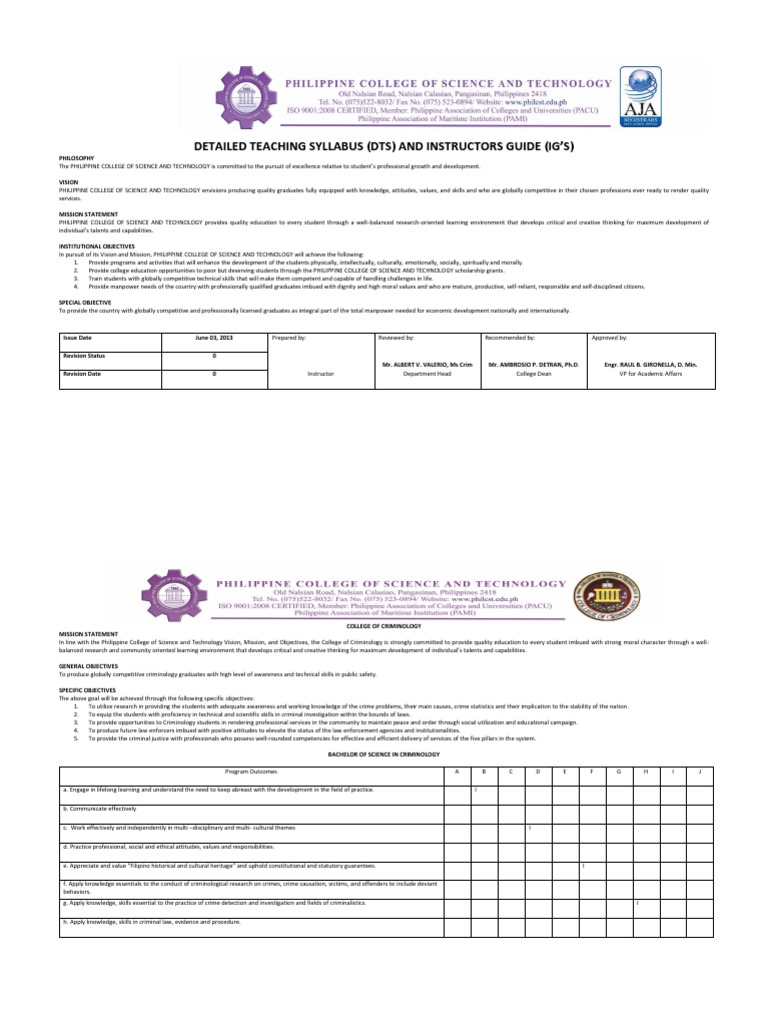 In line with the Philippine College of Science and Technology Vision, Mission, and Objectives, the College of Criminology is strongly committed to provide quality education to every student imbued with strong moral character through a well-